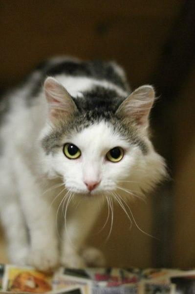 Читать всю историюМакс попал к нам в сентябре 2012г. Ему отодрали хвост.. Рваные раны уже гноились, подозрение на разрыв анального отверстия. Взгляд – затравленный. Не умел даже мурлыкать. Стойко переносил все процедуры. Теперь это Бобтейл. Очень интересный взгляд, серьезный такой. Кастрат, привит.