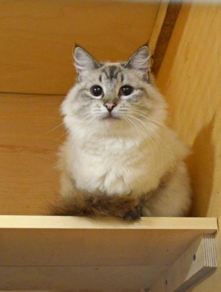 Читать всю историюДаже если она и имеет документы и является породистой кошкой, она очень настрадалась от людей. Зааодчица ее пристроила в "добрые руки" нестерилизованную. Оттуда ее передали в еще одни "добрые руки". В итоге у Умы была нарушена психика. Она перестала доверять. Днями не выходила из-под шкафа. Сейчас Ума уже начала требовать ласки, не шарахается от каждого шороха. Откликается на свое имя.