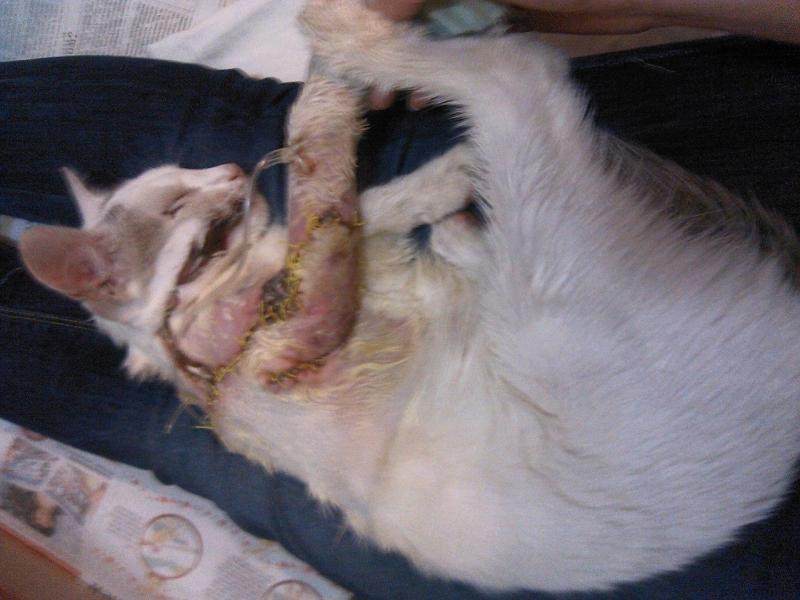 Рябинку нашли в луже. Живой ее сложно было назвать – блохастая тряпочка… Врач, померив температуру (34С) и осмотрев ее, нас пожалела и предложила не мучить себя и усыпить ее. Болезней букет – ринотрахеит, кальциовероз, лишай, ну и истощение. Взялись лечить.