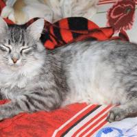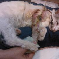 Читать всю историюТишу мы нашли на улице 7 июня 2013 года. Тиша не наступал на заднюю левую лапу, передвигался на 3-х, раненную поджав под себя. Очень худой, сильное истощение, беззвучно открывал ротик, прося помощи и еды. Осмотр показал, что кости срослись неправильно, проблемы с суставом, скорее всего артроз.. Также сломан хвост, но ему не мешает.