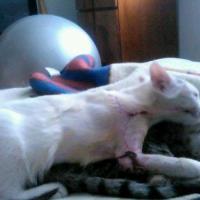 Читать всю историю26 сентября 2012г. нам,, сообщили об уличном коте, который волочил задние лапки. Увезли в клинику на осмотр. Из-за застарелого перелома позвоночника не смог убежать от собак и его хорошенько прихватили. Диагноз - жить ему месяц-два, перелом позвоночника, отказ задних лап, неконтролируемое мочеиспускание и дефекация, никогда не будет ходить.